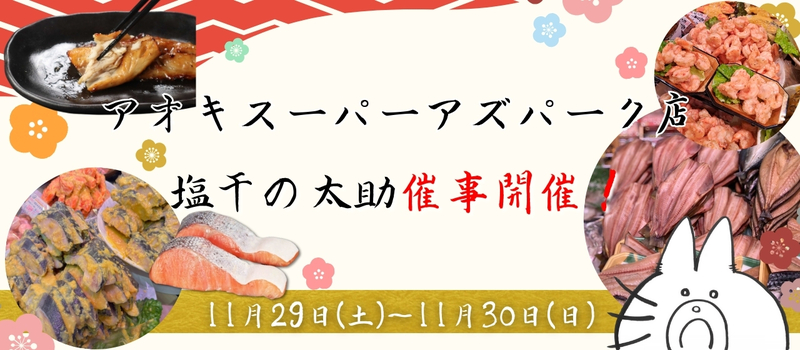 アオキスーパーアズパーク店様にて、塩干の太助催事を開催いたします!