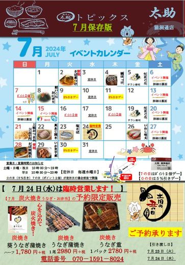 塩干の太助やきはま覚王山店の7月イベントのお知らせ。